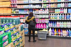 L’offre est infinie, comme en témoignent les linéaires des supermarchés dédiés aux produits d’entretien. Sous des emballages attrayants, ils déclinent toutes sortes de vertus et parfums « qui sentent le propre », nous promettent le meilleur résultat, surtout sans effort et... vite. Photo tirée de l'article Moustique : Vos produits d'entretien ne sont pas si clean que cela